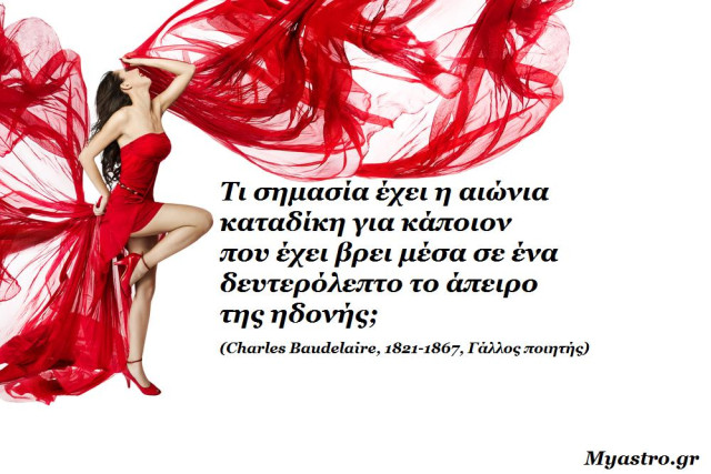Οι αισθήσεις σου, το μυαλό σου, η καρδιά σου, όλα είναι σε επιφυλακή, σαν κάτι να περιμένουν να συμβεί! Και πως αλλιώς θα μπορούσε να είναι, αφού τα πάντα γυρίζουν γύρω από εσένα και από τις σχέσεις σου! Αν έχεις ξεκινήσει κάτι στο πρόσφατο παρελθόν, που για κάποιο λόγο είχατε χαθεί, είχε φύγει από κοντά σου ή εσύ το απομάκρυνες, τώρα επιστρέφει στη ζωή σου για να κλείσει τον κύκλο πανηγυρικά! Είναι πολύ πιθανό να το δεις να μετατρέπεται σε σχέση και μάλιστα με πολύ καλές προδιαγραφές… Γενικότερα όμως, μπαίνεις σε μια περίοδο που πολύς και καινούργιος κόσμος θα μπει στη ζωή σου, για να την φωτίσει, να την ομορφύνει, αλλά και να σου δημιουργήσει συναισθήματα ερωτικής έντασης, που θα ξυπνήσουν και το στοιχείο της υπερβολής που κρύβεις μέσα σου, μια και ό,τι ζεις, θα νοιώθεις πως δεν σου φτάνει και θέλεις περισσότερο! Ο έρωτας σε αποθεώνει και τον αποθεώνεις πανηγυρικά, μέσα στα κόκκινα σεντόνια του ερωτικού Πάθους!