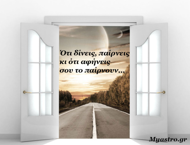 Από την άλλη μεριά, υπάρχει και ένα σημαντικό αντίβαρο σε όλα αυτά… Είναι το τρίγωνο του Ηλίου με τον Ποσειδώνα που κορυφώνεται στην σημερινή ημέρα. Η όψη αυτή σε προτρέπει να ακολουθήσεις το δρόμο που ορίζει η ψυχή σου, το συναίσθημά σου, το όραμά σου, αυτό που εσύ δημιουργείς, για να φωτίσει ένα καλύτερο αύριο, που θα σε κάνει ευτυχισμένο! Άσε τις διεκδικήσεις και τις αντιπαραθέσεις… Όταν ακολουθείς το φωτεινό μονοπάτι της ψυχής σου, είσαι αληθινός απέναντι στον εαυτό σου και… ευτυχισμένος!