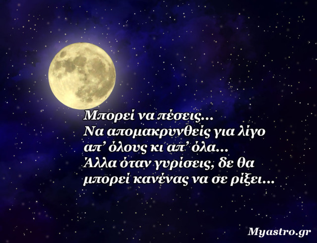 Η περίοδος της Πανσελήνου είναι αυτή που έρχεται να επισφραγίσει ένα αποτέλεσμα! Ανάλογα λοιπόν με το πώς έχεις κινηθεί μέχρι σήμερα, πώς έχεις αξιολογήσει τα μέχρι τώρα δεδομένα σου και φυσικά πόσο συνεπής είσαι απέναντι στον εαυτό σου και την αλήθεια σου, θα έχεις και το αντίστοιχο αποτέλεσμα. Η αντίθεση του Ήλιου και της Σελήνης σε βάζει στην διαδικασία να βρεις τι έχεις παραλείψει, ποια κίνηση δεν έπρεπε να κάνεις, τι δεν κατάφερες να ισορροπήσεις και να ανακαλύψεις εκείνες τις… αθέατες μέχρι τώρα ποιότητες που κρύβονται μέσα σου, όμως είναι τόσο σημαντικές για την εξέλιξή σου!