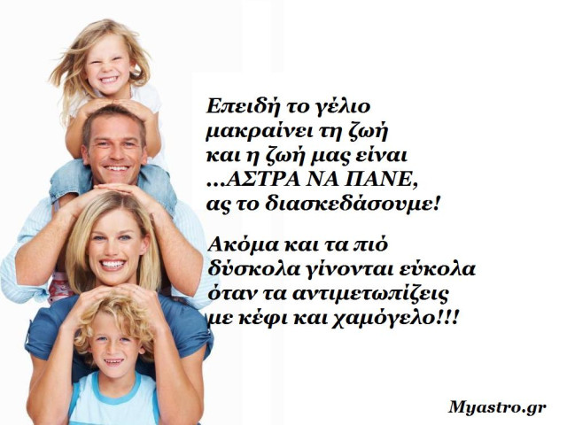 Επειδή το γέλιο μακραίνει τη ζωή και η ζωή μας είναι ...ΑΣΤΡΑ ΝΑ ΠΑΝΕ, ας το διασκεδάσουμε! Ακόμα και τα πιό δύσκολα γίνονται εύκολα όταν τα αντιμετωπίζεις με κέφι και χαμόγελο!!!