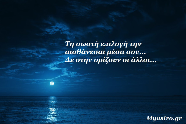 • Στο διάστημα που η Σελήνη είναι σε χάση: Μπορείς να το ρίξεις στην αυτογνωσία και στην αυτοκριτική, πρόσεξε όμως μη φανείς αμείλικτα αυστηρός απέναντι στον εαυτό σου. Η κρίση σου είναι αρκετά οξυμένη, αλλά μη βγάζεις συμπεράσματα, χωρίς να αφήνεις και την καρδιά σου να μιλήσει. Με σκέτη λογική κανείς δεν πάει πολύ μακριά.